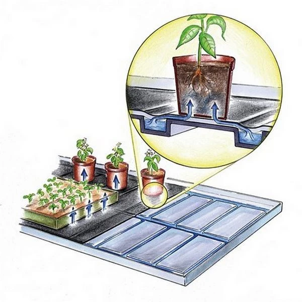 Twee bewateringstrays met vloeidoek onmisbaar in de plantenteelt bij het opkweken van jonge planten, zaailingen en stekken.