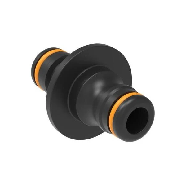 Om tuinslangen en druppeldarmen met verschillende diameters op elkaar aan te sluiten kan je gebruik maken van deze slangkoppeling 2-weg van Fiskars.