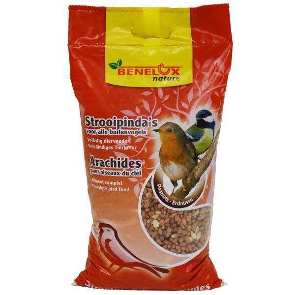 Pindanoten als voer voor tuinvogels, ideaal voor onder andere mezen, vinken,… Pindanoten zijn voor hen niet te versmaden en leveren de vogels extra energie.