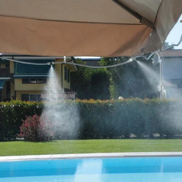 Ook op zoek naar verkoeling tijdens een warme zomerdag? Dit systeem is dan zeker de oplossing voor jou! Hang het vernevelingssysteem gewoon aan jouw parasol, prieel of aan jouw terrasmuur en ervaar een aangename verfrissende waternevel boven jouw ligzetel!