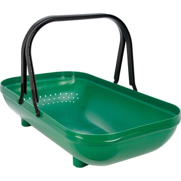 Handige en bovendien ruime oogstmand voor fruit en groente. Wanneer alles is verzameld kan je de oogst gemakkelijk spoelen in de groene verzamelmand.